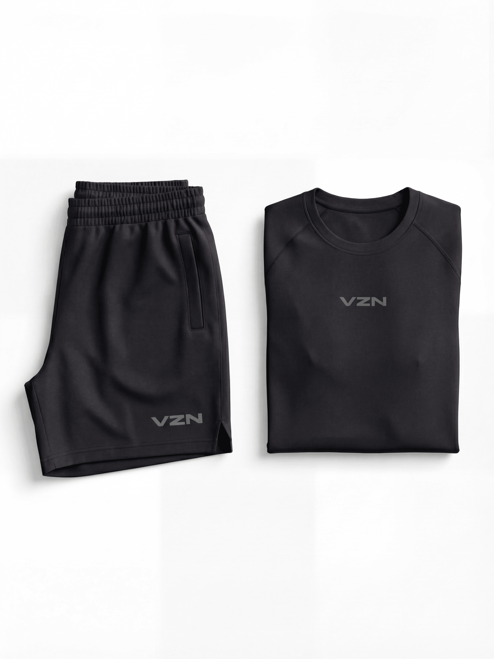 The VZN Bundle - Blackout is built for those who train in silence and move with conviction. Featuring the Black VZN Compression Tee and Black VZN Mesh Shorts, this set delivers locked-in performance where it matters most. breathable, lightweight, and forged for pressure.